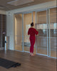 Our Sculpt Bra and Legging Set in Haute Red ❤️ styled with the Cozy Fleece Flashdance Sweater.